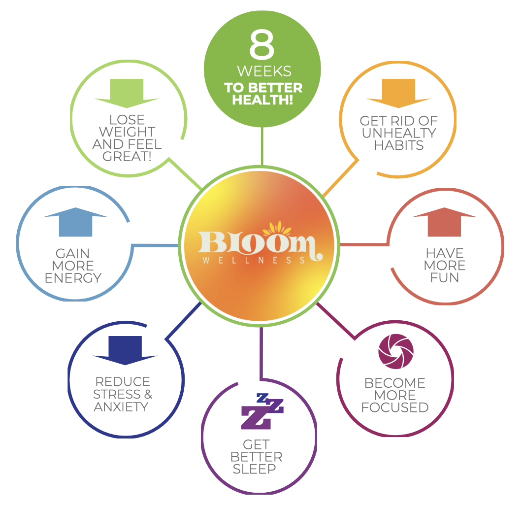 Our Live Life in Full Bloom Program is a step-by-step system where small shifts lead to big results. Our 8 Branches of Bloom Wellness create a powerful road map for our journey. We will get rid of old habits that are not serving you and develop new ones that are fun, easy, and sustainable.